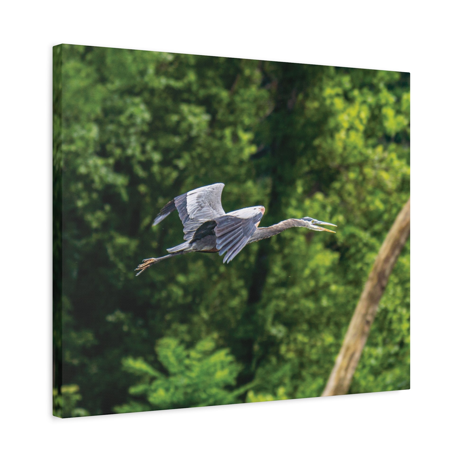 A great blue heron glides gracefully over the White River, embodying calm and freedom in the heart of the Ozarks. This 24"x20" canvas brings serene energy and natural beauty into any space.